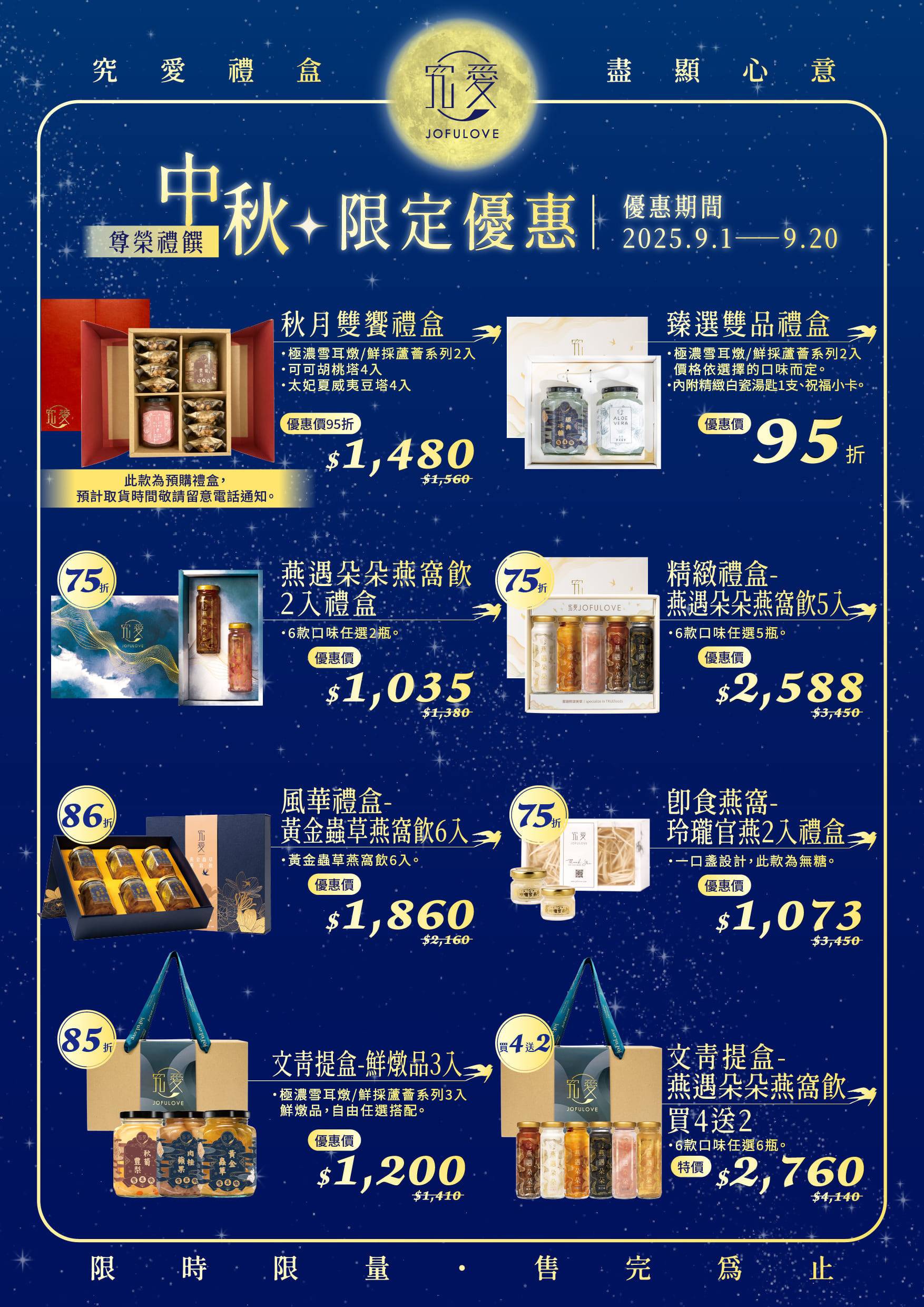 中秋禮盒,企業採購,大宗採購,中秋送禮,送禮首選,中秋節,早鳥預購,早鳥優惠,預購,究愛燕窩,燕窩,白木耳,蘆薈飲,堅果塔,夏威夷豆,可可,中秋節快樂