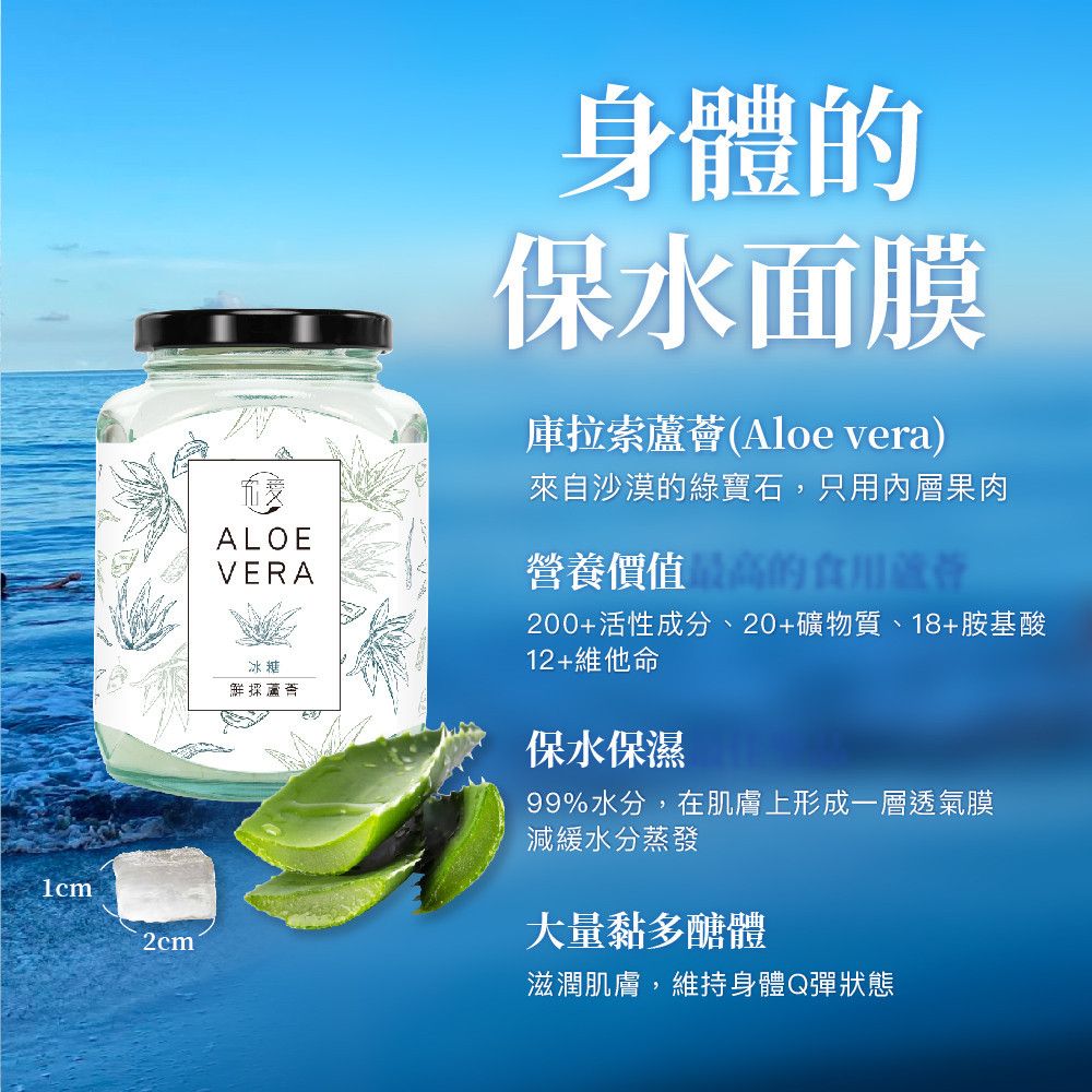 嚴選食用級庫拉索蘆薈,晶瑩飽滿的果肉,柔軟中帶點清脆;