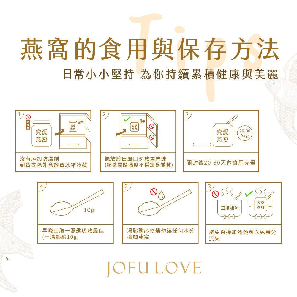 即食燕窩為純天然無添加產品,開封後請於 20 天內食用完畢。